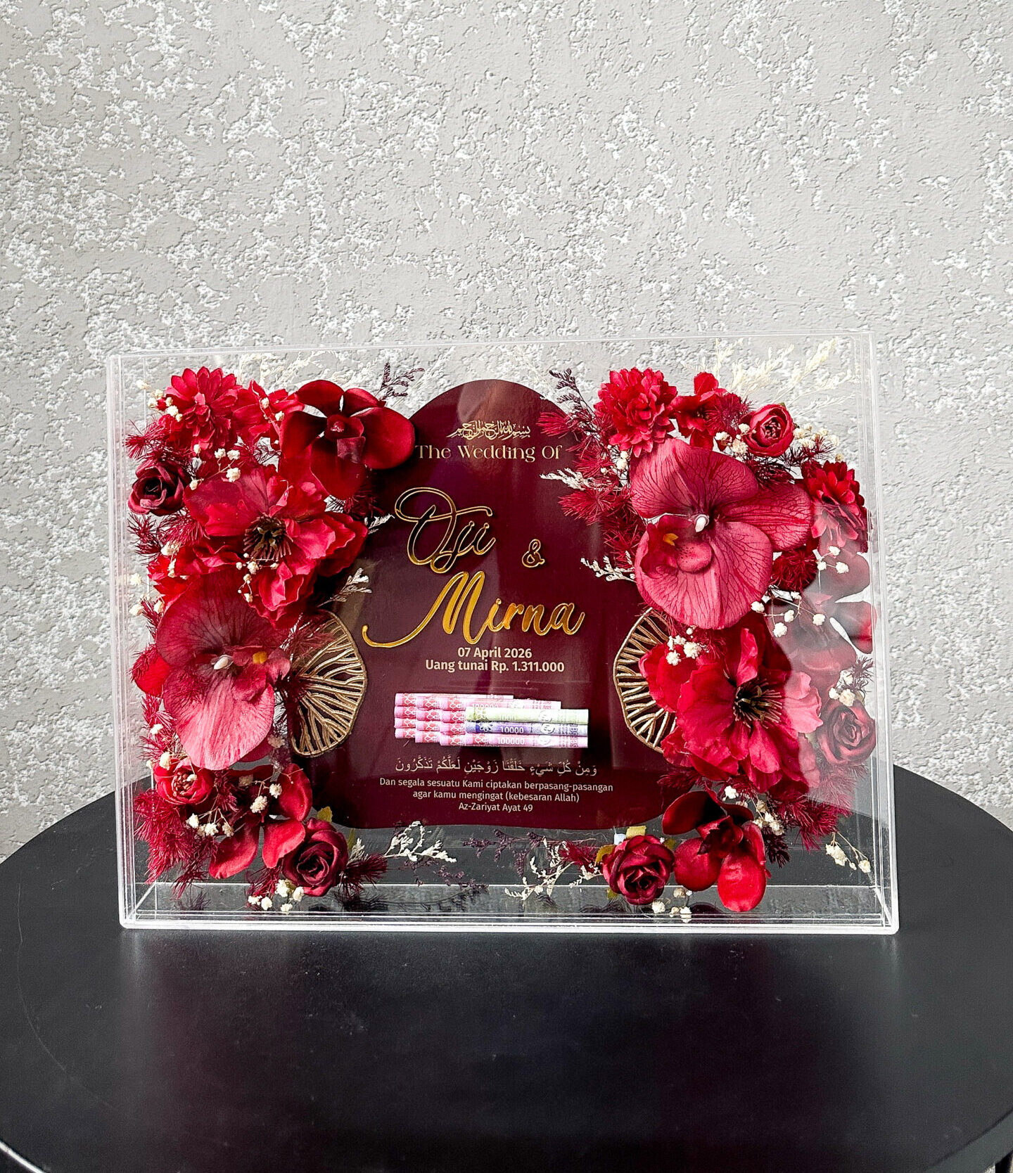 Mahar Simbolis Bingkai Akrilik Ukuran 30 x 40 cm. Isi akrilik print uv latar wallpaper. Bisa ganti ukuran bingkai, warna dan ornamen.