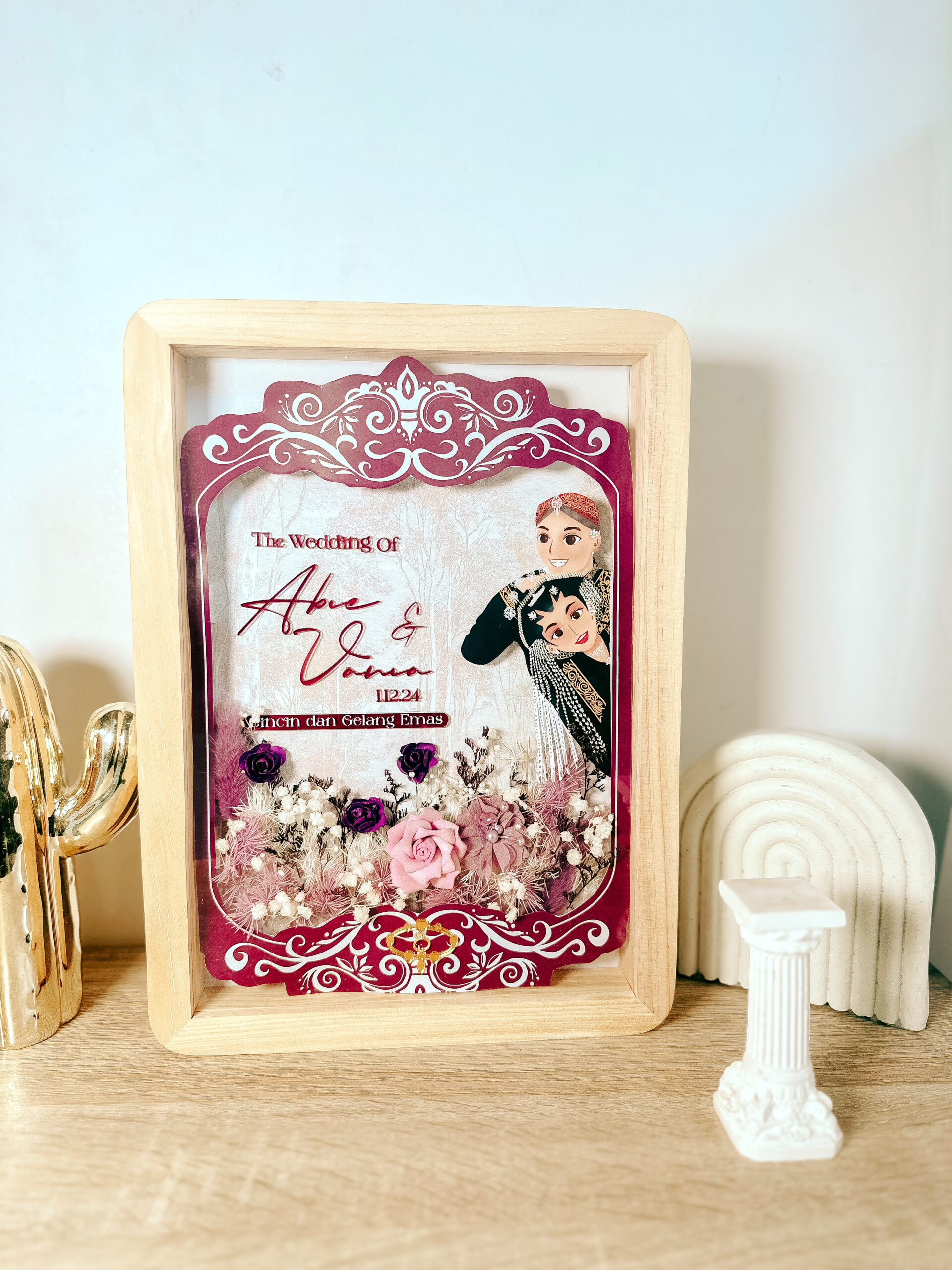 Mahar Simbolis Bingkai Akrilik Ukuran 20 x 30 cm. Isi akrilik print uv latar wallpaper. Bisa ganti ukuran bingkai, warna dan ornamen.