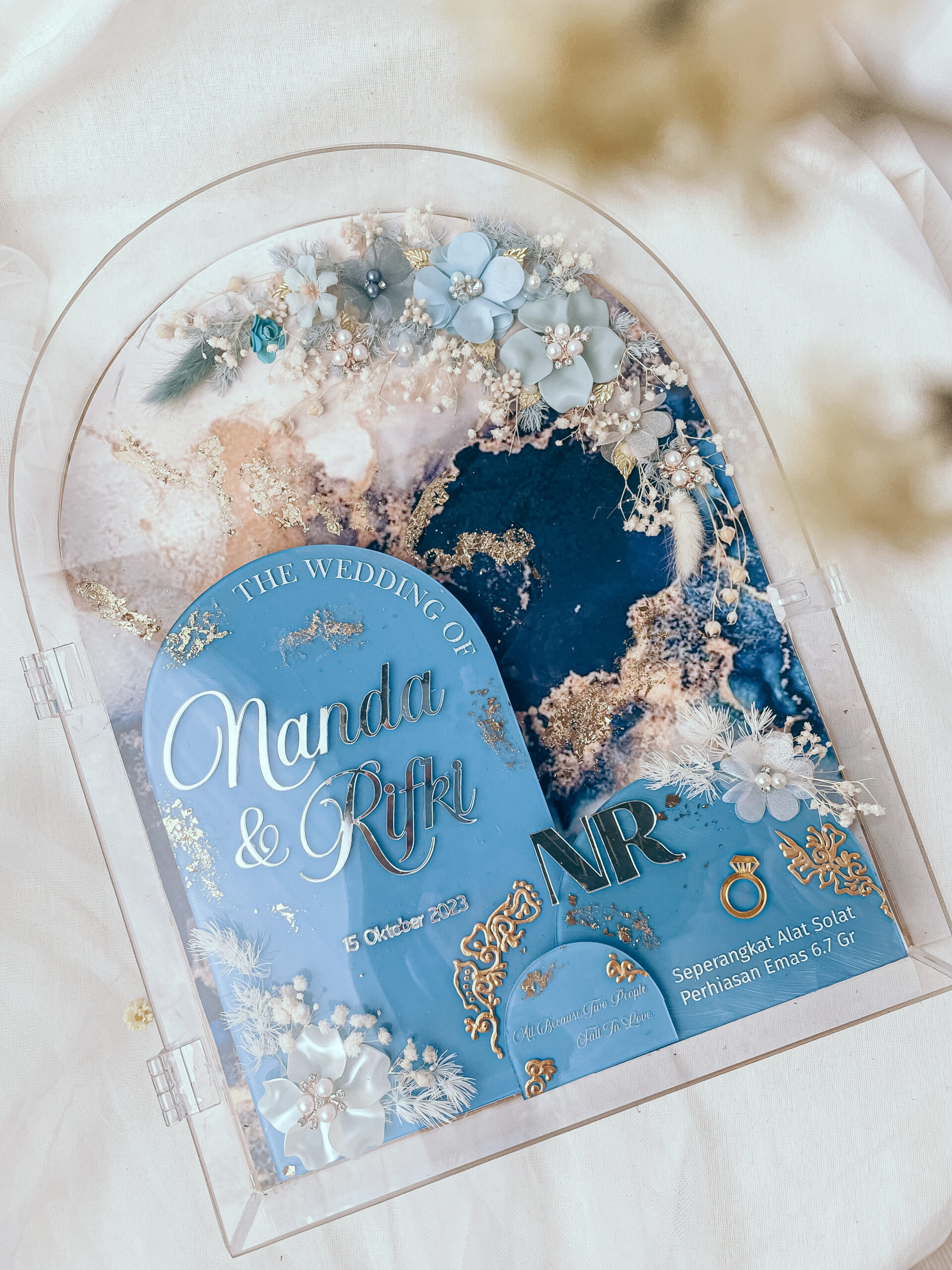 Mahar Simbolis Bingkai Akrilik Ukuran 30 x 40 cm. Isi akrilik print uv latar wallpaper. Bisa ganti ukuran bingkai, warna dan ornamen.