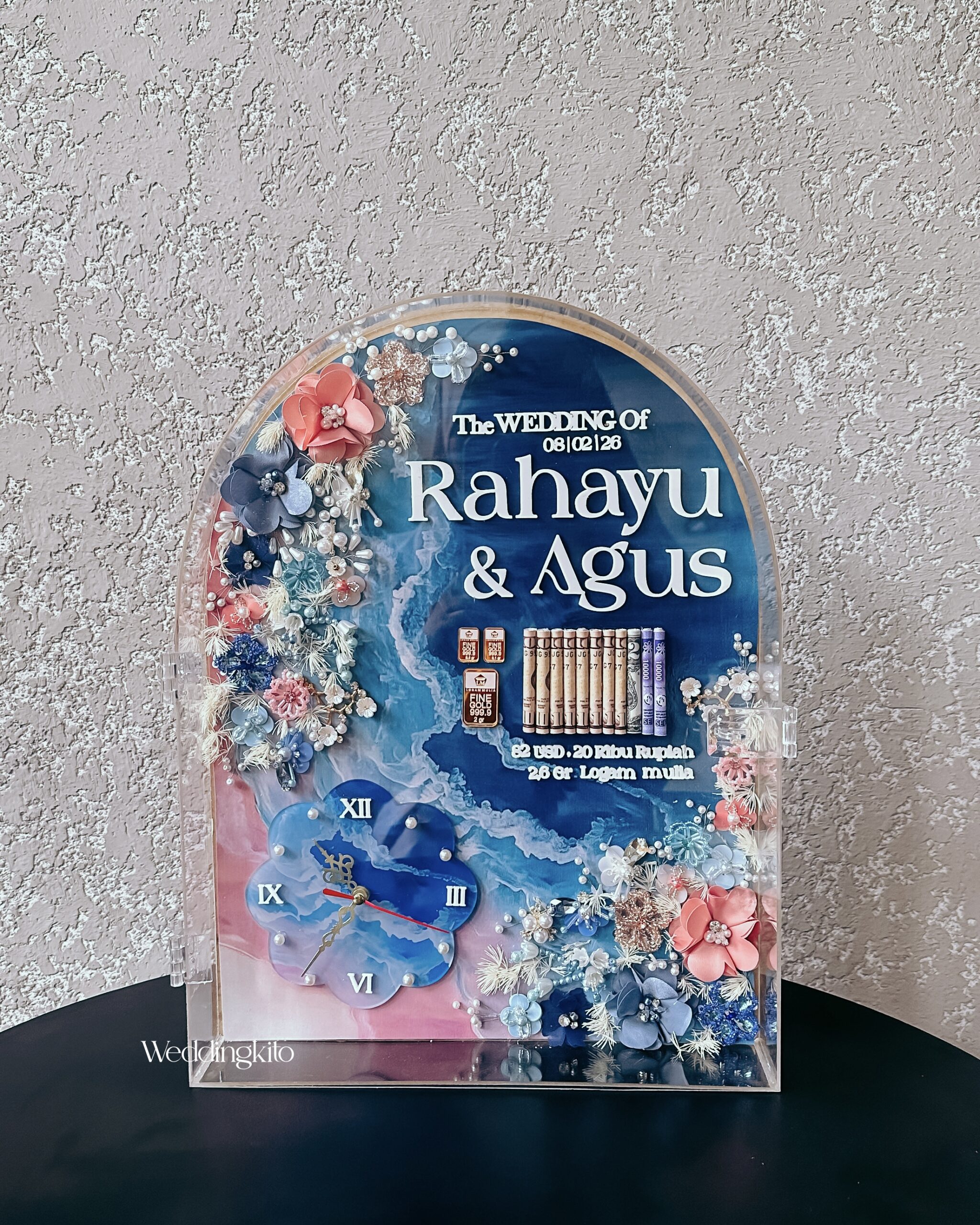 Mahar Simbolis Bingkai Akrilik Ukuran 30 x 40 cm. Isi akrilik print uv latar wallpaper. Bisa ganti ukuran bingkai, warna dan ornamen.