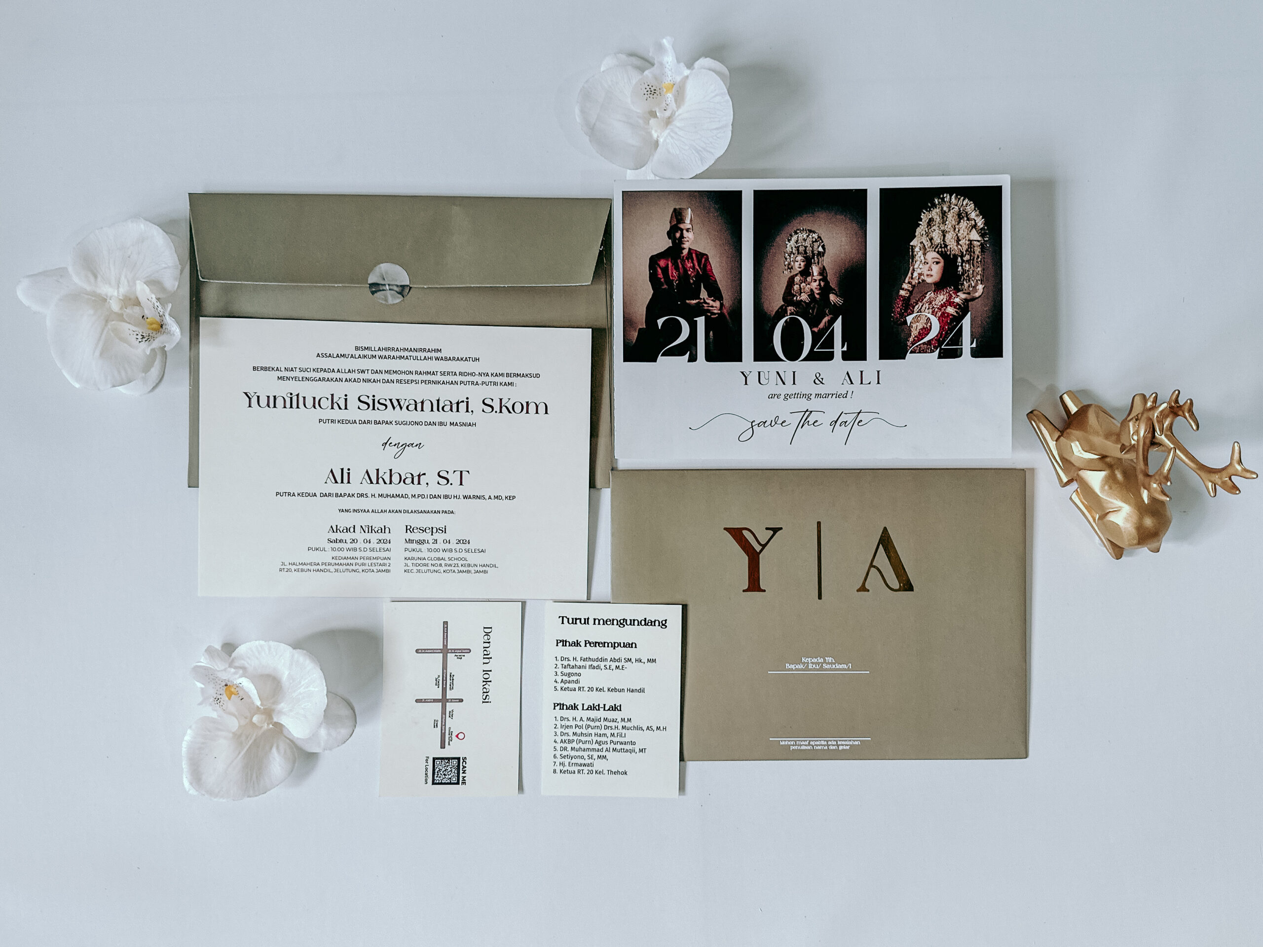 Undangan Amplop 1 sisi isi dalam tidak keras + hotprint gold +laminating doff + card 1 2 sisi + sticker seal (harga yang ditampilkan adalah harga total untuk 200 Pcs. Minimal pemesanan 200 pcs. Detail harga lengkap bisa dilihat di lampiran harga di bawah)