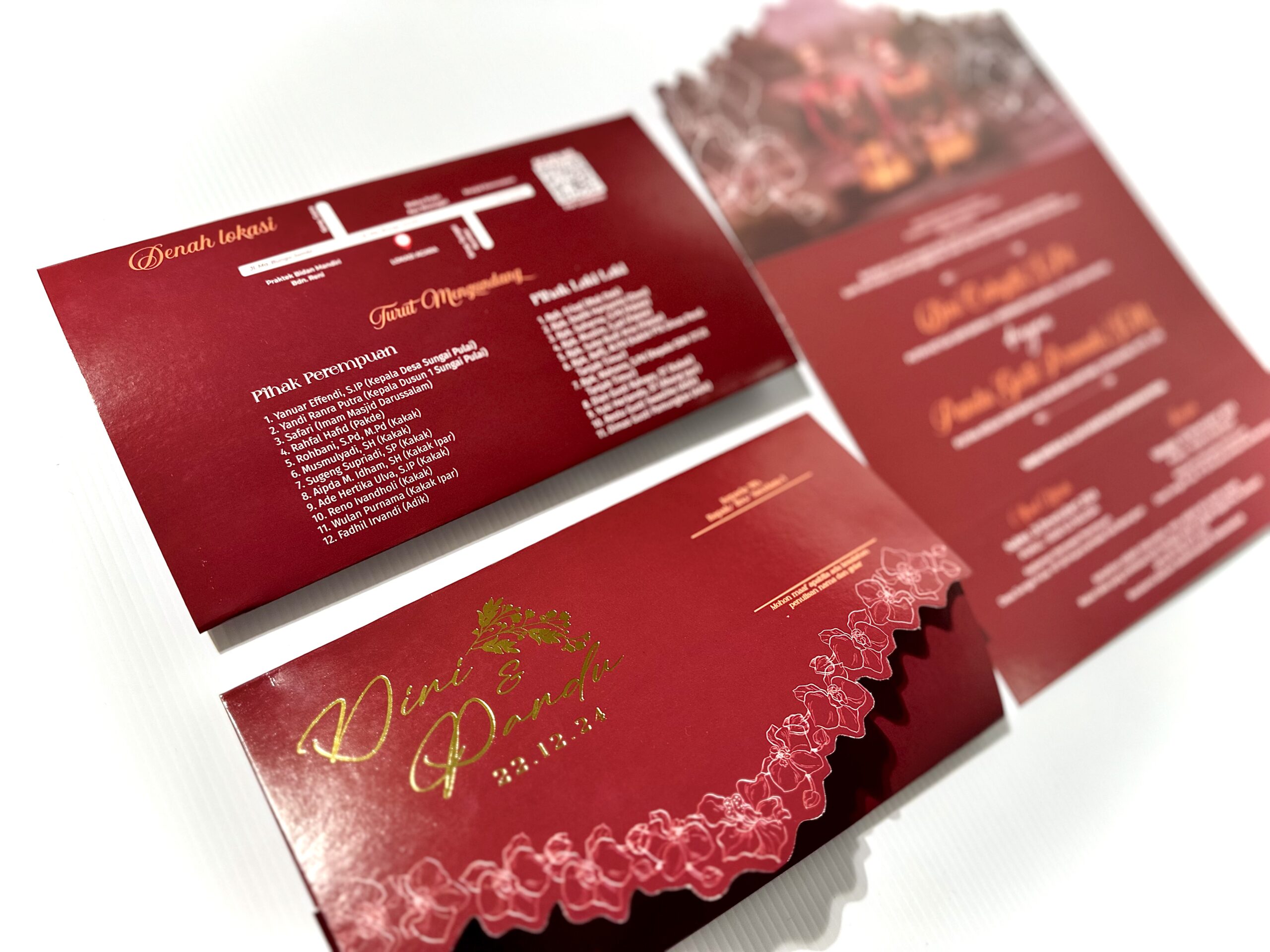 Undangan A4 satu lembar + Pola + hotprint gold (harga yang ditampilkan adalah harga total untuk 200 Pcs. Minimal pemesanan 200 pcs. Detail harga lengkap bisa dilihat di lampiran harga di bawah)