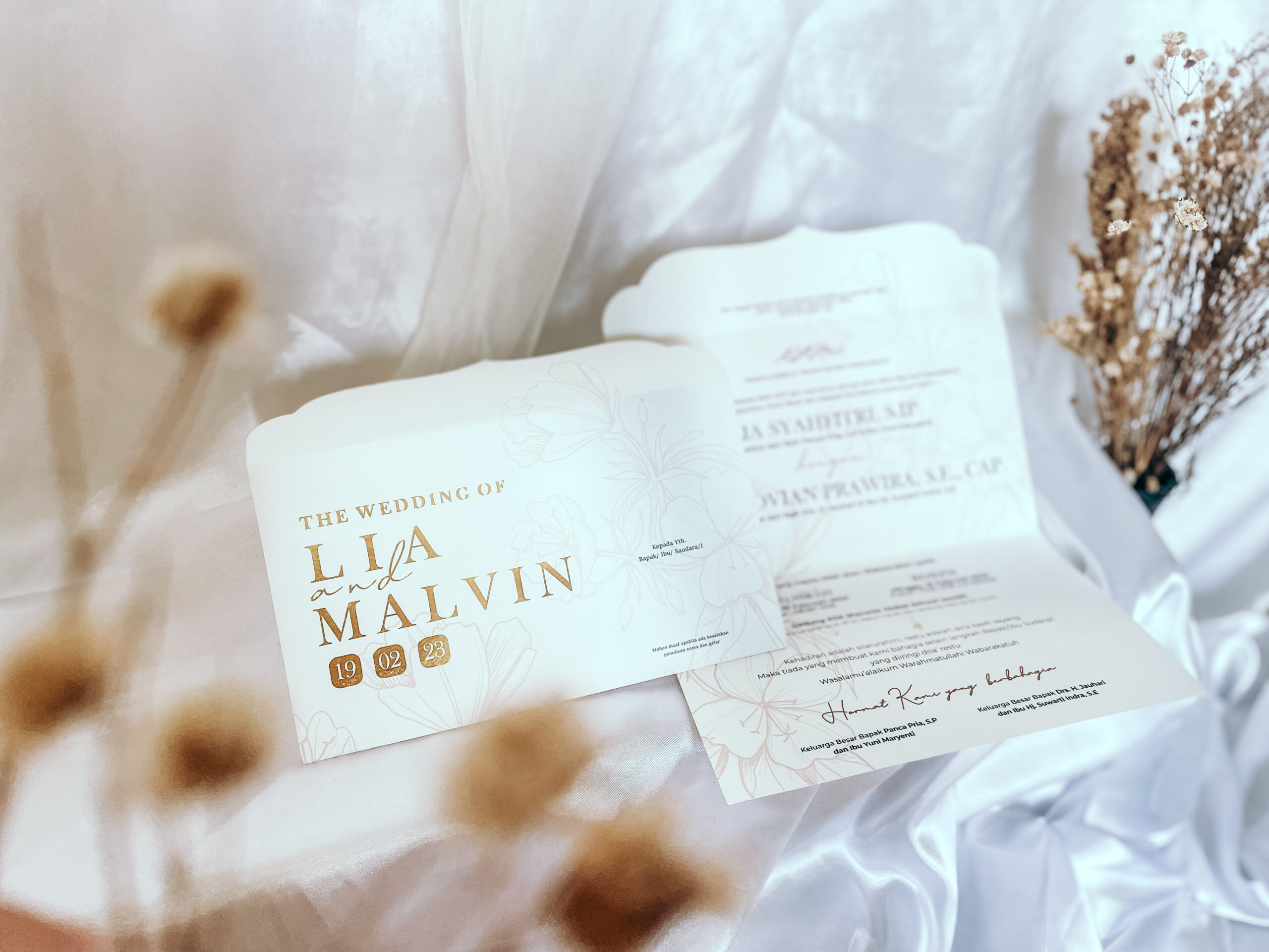 Undangan A4 satu lembar + Pola + laminating doff + hotprint gold (harga yang ditampilkan adalah harga total untuk 200 Pcs. Minimal pemesanan 200 pcs. Detail harga lengkap bisa dilihat di lampiran harga di bawah)