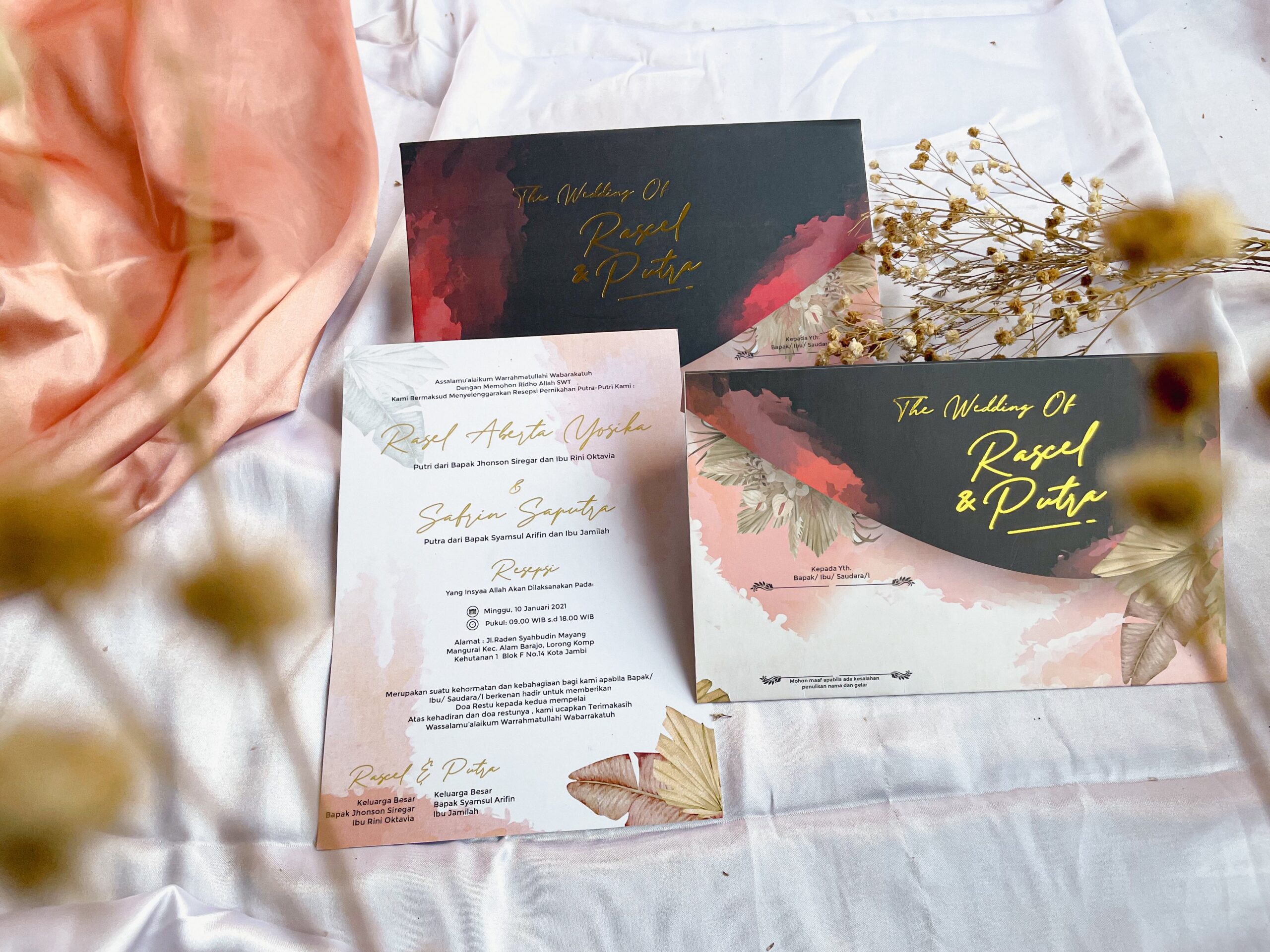Undangan F4 satu lembar + Pola + hotprint tulisan gold + laminasi doff (harga yang ditampilkan adalah harga total untuk 200 Pcs. Minimal pemesanan 200 pcs. Detail harga lengkap bisa dilihat di lampiran harga di bawah)